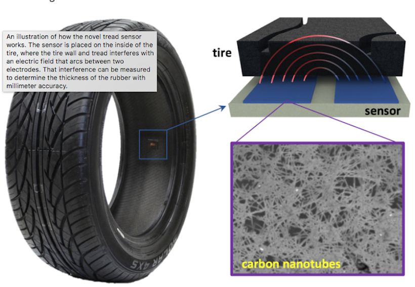 "With all of the technology and sensors that are in today's cars, it's kind of crazy to think that there's almost no data being gathered from the only part of the vehicle that is actually touching the road," said Aaron Franklin, associate professor of electrical and computer engineering at Duke. "Our tire tread sensor is the perfect marriage between high-end technology and a simple solution."