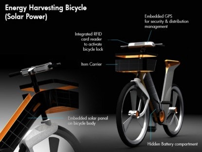 The Energy Harvesting Intermode Transport System also features an integrated RFID card reader which activates the bicycle lock and an embedded GPS for better security. The bicycle is still at the concept stage but in the future, and with refinements, could become a valuable source of power to commuters.