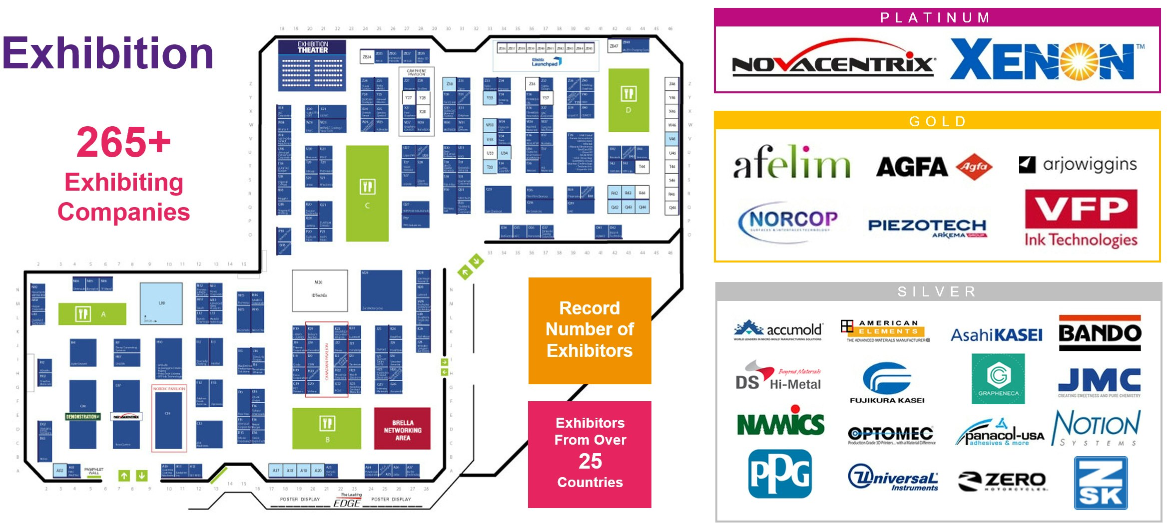 The exhibition will feature Demonstration Street , an area in the exhibition dedicated to showing a collection of printed electronics based products and prototypes in once place. Products and samples will be shown for the first time here. It will include printed flexible displays, OLED displays, electrophoretic and electrochromic displays, stretchable lighting, touch textile pads, sensors, solar cells and thin film batteries incorporated into prototype and commercial products.
